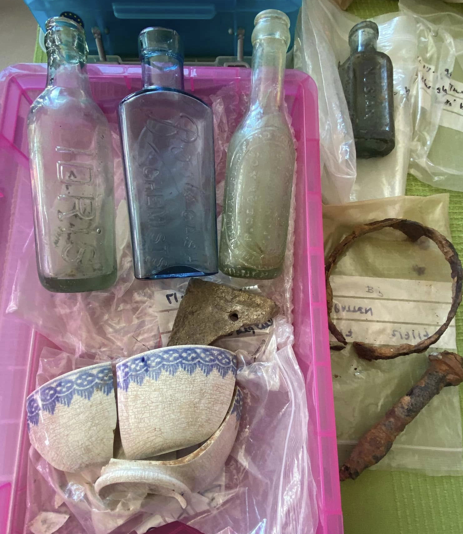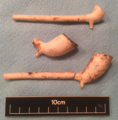 A diverse range finds have been located, including a mixture of domestic items, such as clay pipe stems and glazed pottery; industrial items, such as metal tools and railway related equipment; plus a possible fragment of a waterwheel paddle. Findings of slag across the site indicate the presence of metal working forges, including a finery forge, in the vicinity of the site.