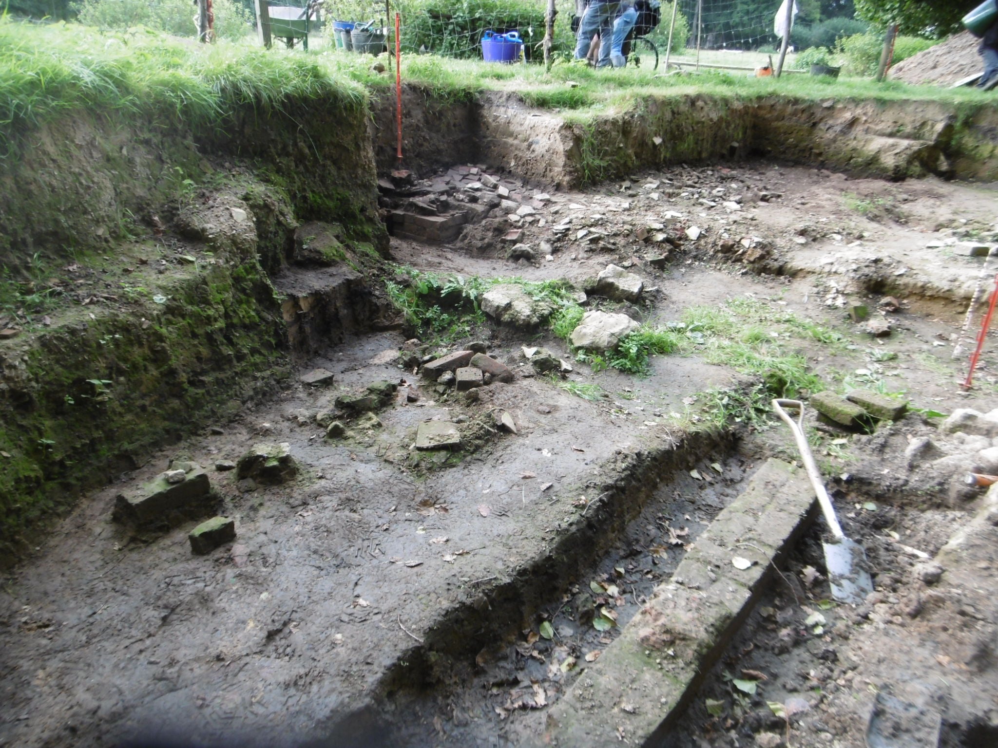 (at foundation level) we identified numerous brick structures, including brick pillars to support the waterwheel. Over 500 finds have been discovered which include a range of industrial and domestic objects, such as clay pipe stems, glazed pottery and industrial iron implements.